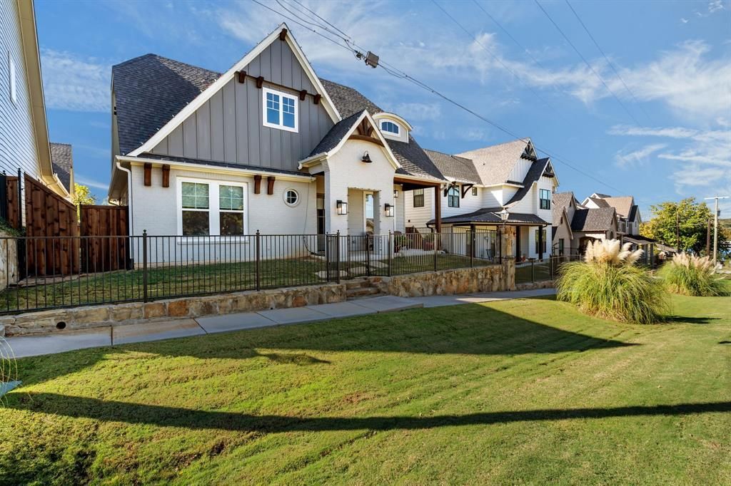 Stunning Argyle residence that perfectly blends timeless curb appeal with refined, modern design. From the moment you arrive, you’ll be captivated by the beautiful cottage like exterior, welcoming front porch, and impeccable curb appeal. Step inside to find warm hand-scraped wood flooring, custom lighting, and wood beam accents throughout. The open-concept living area is flooded with natural light from large picture windows overlooking the backyard oasis, and features a cozy fireplace that anchors the space. The chef-inspired kitchen is equipped with quartz counter-tops, a built-in commercial-size refrigerator, stainless steel appliances, and a 5-burner gas cooktop with a custom-faced vent hood. Entertaining is effortless with the massive kitchen island, extended butler’s pantry, large walk-in pantry, and built-in buffet in the dining area. A dedicated home office offers built-in floor-to-ceiling cabinetry and shelving, providing both function and style. The split-bedroom layout ensures privacy, with spacious secondary bedrooms. The primary suite is a true retreat—featuring a massive bedroom, spa-like en-suite bathroom with a stand-alone soaking tub, oversized walk-in shower, separate his-and-hers vanities, and a huge walk-in closet designed for organization and luxury. Step outside to your own private paradise. The backyard features a sparkling heated pool and spa combo, built-in kitchen with grill and space for fridge and a covered sitting area with custom roller shades that can fully enclose the space—perfect for year-round relaxation and entertaining. This home is where craftsmanship meets comfort, offering a lifestyle of beauty, convenience, and sophistication—all in the heart of Argyle. Cameras throughout and camera DVR will convey with home, along with 24kW whole home generator. Energy efficient and soundproof with spray foam insulation throughout.