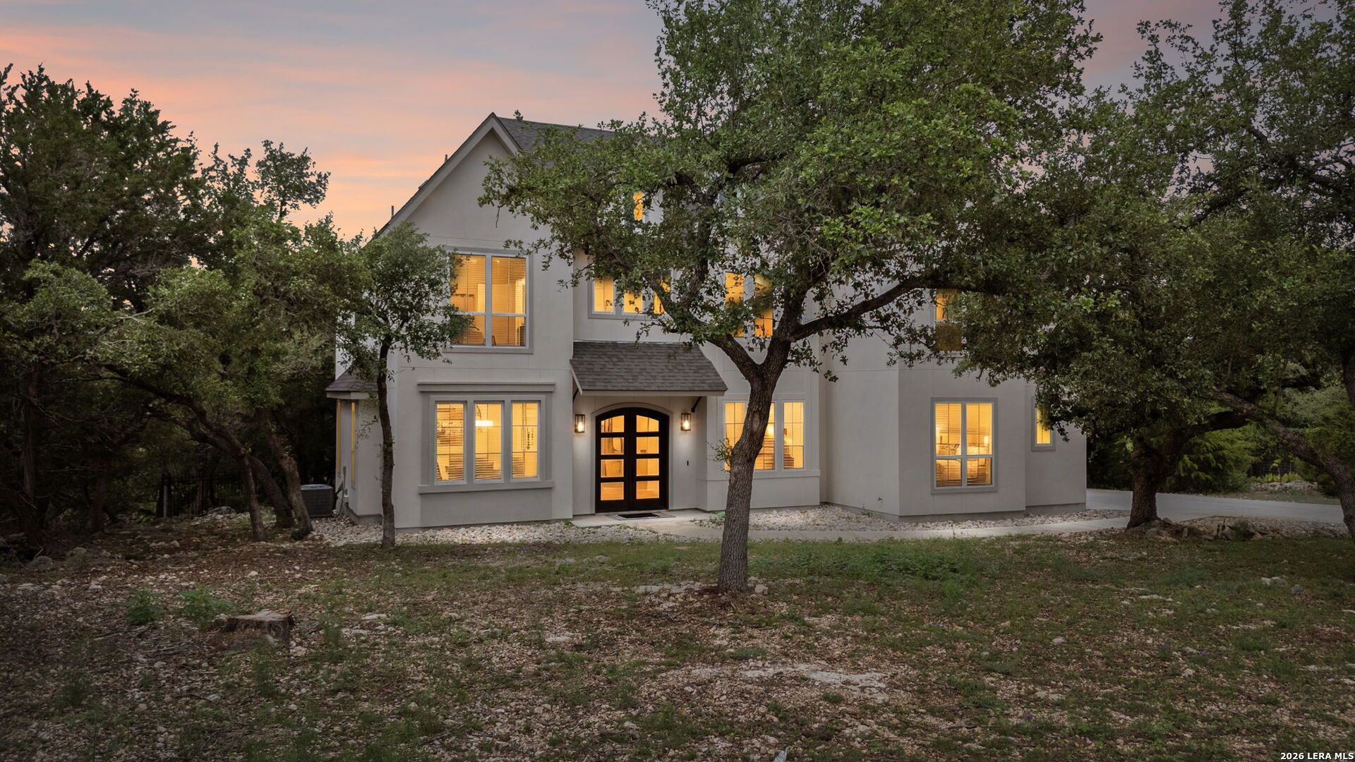 Set on just over 2 acres in The Crossing at Spring Creek, this Hill Country home offers the space, privacy, and comfort todays buyers are looking for, paired with a thoughtful design that supports everyday family living. Inside, the open layout is filled with natural light, highlighted by soaring ceilings, wood beam accents, and a welcoming living area anchored by a brick fireplace. The kitchen is designed to gather, featuring granite countertops, stainless steel appliances, a pot filler, and an oversized island that flows seamlessly into both dining and living spaces. With six bedrooms, a full bath and bedroom on the main level, five total full bathrooms, and a convenient half bath with outdoor access, plus a dedicated media room and flexible living spaces, the home provides room to grow, host, and adapt to changing needs. The primary suite offers a quiet retreat with a spa-like bath, dual vanities, soaking tub, walk-in shower, and generous closet space. Step outside to a covered patio and outdoor kitchen overlooking mature trees and Hill Country views. With direct access to Spring Creek and a spacious lot, theres plenty of room to relax, entertain, and enjoy the outdoors. Located within a community offering amenities like a pool, trails, and clubhouse, this home combines the feel of a private retreat with the benefits of neighborhood living.